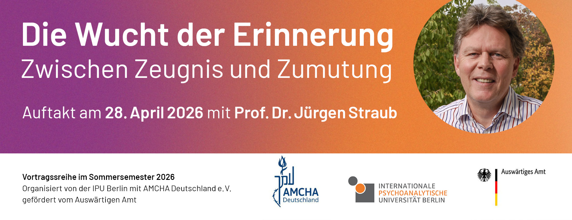 Die IPU Berlin organisiert diese Reihe zusammen mit Amcha Deutschland e. V. AMCHA wurde 1987 in Israel von Holocaust-Überlebenden gegründet und bietet psychosoziale Unterstützung für Überlebende und ihre Angehörigen; AMCHA Deutschland e. V. unterstützt diese Arbeit seit 1988 und bringt sie in die öffentliche und fachliche Auseinandersetzung in Deutschland ein.