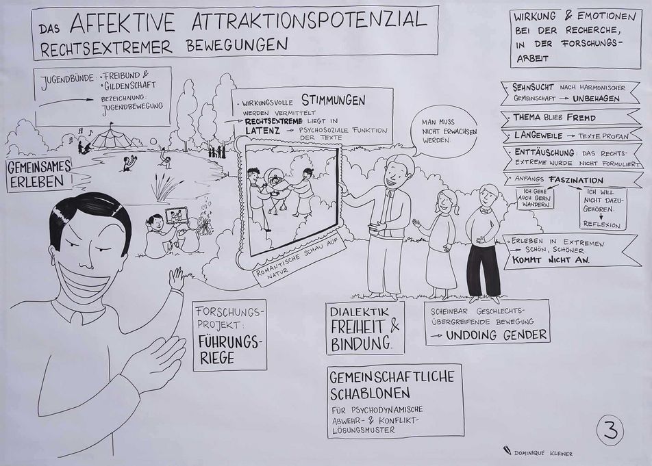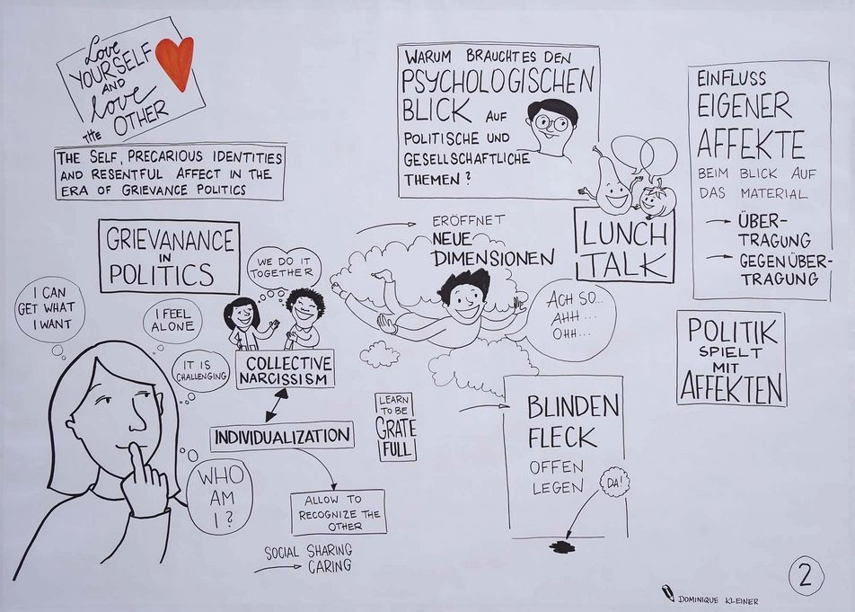 Neben einer Ausstellung bot die Tagung unter anderem zwei Keynotes von Prof. Catarina Kinnvall (Lund University) und Prof. Cynthia Miller-Idriss (American University, Washington D. C.) sowie eine Dokumentation der Tagung in Form von Graphic Recordings.